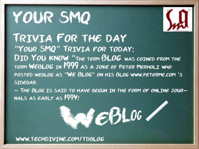 We have added a New Section called YourSMQ Trivia from our Your SMQ – Social Media Quotient team