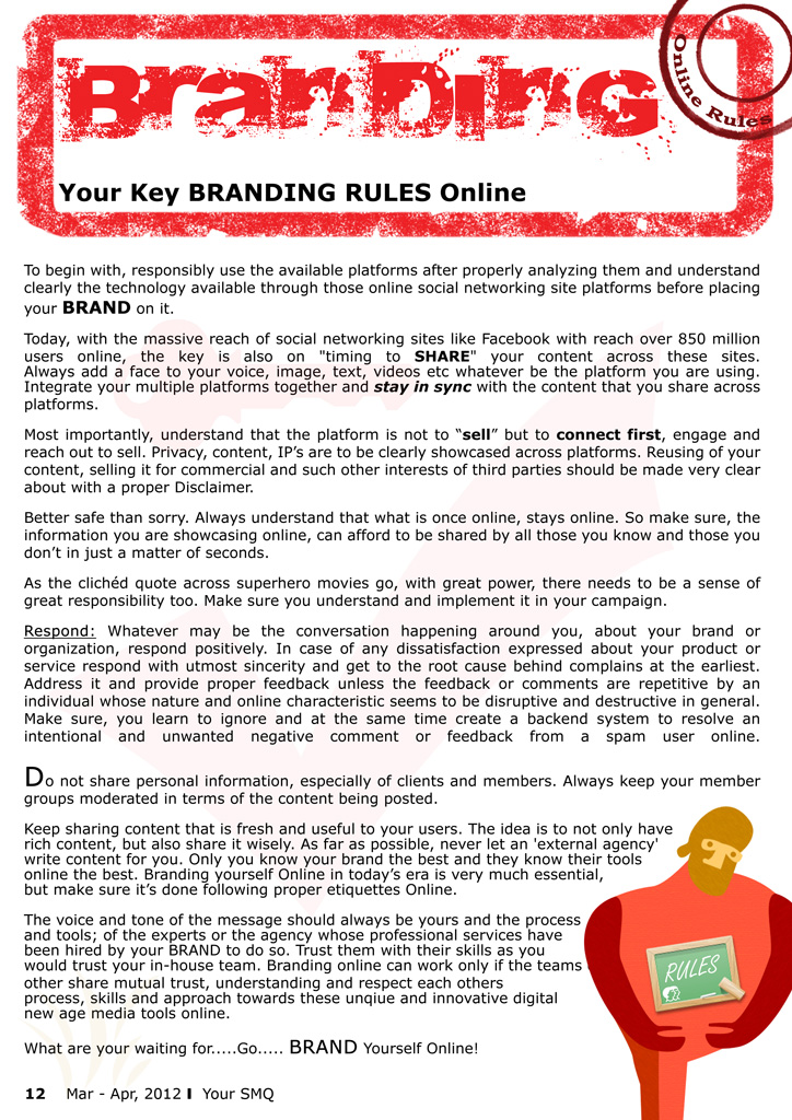 So before one goes ahead using the power of online marketing, social media marketing, brand monitoring, seo tools of today and leverages it for their brand, it is very much essential to know, what are the keys BRANDING rules to follow especially on an online platform.