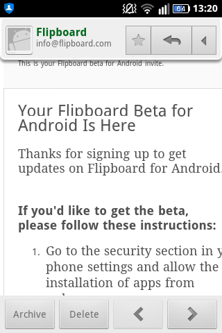 Flipboard, which was a Galaxy SIII exclusive earlier,is now available as a beta for almost all Android Devices. You can sign up for the beta here and they will send you a link to download the apk file within a few hours.