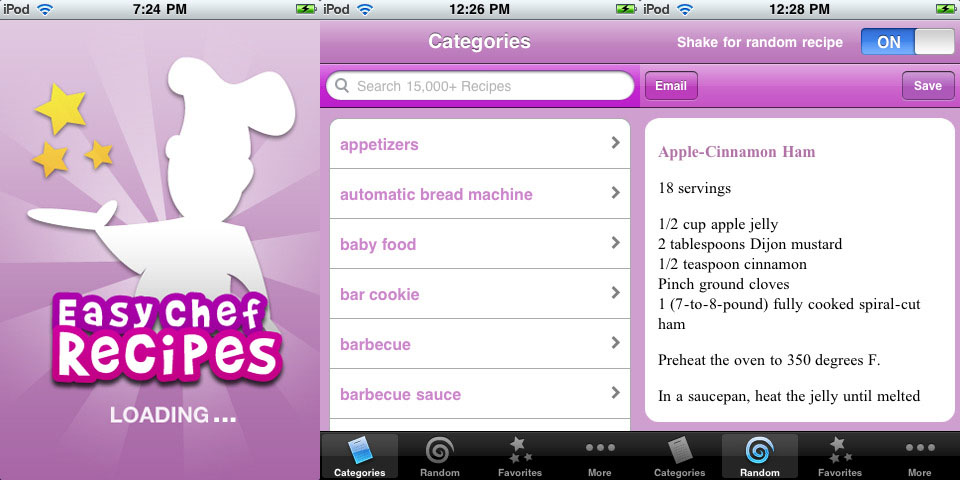 - Shake your phone to go to a “random” recipe when you lack inspiration.