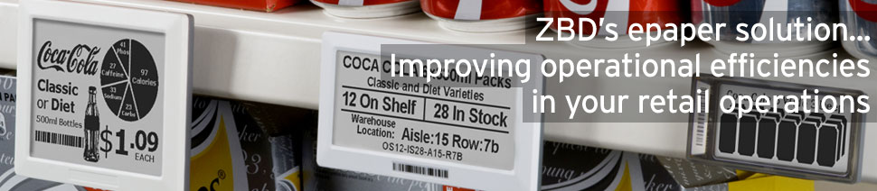 ZBD solutions has developed an epaper LCD shelf display that can update itself automatically as per your requirements. You might have come across these kind of displays in ebook readers like an Amazon Kindle.