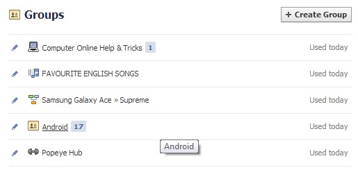 You can create groups for specific persons to share only some information with them. For example a book reading group or a group for friends who stay in your society. You can set the group visibility to secret so that no one else can see the posts made within the group. You can create groups by selecting “Create Group” in the left hand panel from your main news feed.