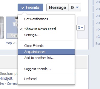 Facebook lets you sort your friends akin to Google Plus. Just go to your friends profile and move your mouse to the friends button situated next to messages. It will reveal a drop down menu where you can add that friend to close friends or acquaintances. They will not be informed of this changes. Under the settings button you can also specify what kind of updates you would like to see from them. You can set it to show all updates or only when they post statuses or photos. No more updates about games or fortune cookie apps cluttering your News feed! You can completely stop posts from a person by unticking “Show in News Feed”. This way you don’t have to unfriend anyone as well.