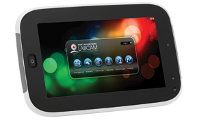 The Intel Studybook is a rugged tablet with a waterproof 7 inch, 1024×600 capacitive multi-touch screen and rubber port covers to protect them from dust. This tablet was definitely made for rough use judging by these features. Inside it houses a single-core Intel Atom Z650 chipset that runs either Windows or Android (Honeycomb 3.0). It also has “LabCam” a touch -optimized application for science and mathematics.
