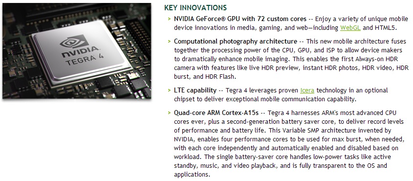 The head turners so far from day 1 of this years CES were Nvidia’s many announcements and Lenovos new range of Windows 8 devices. Nvidia revealed their new Tegra 4 processor. This is the worlds first Quad Core A15 CPU with a mind numbing 72 cores. What this translates to is high performance gaming for smartphones and tablets, gaming systems and PCs, Computational Photography Capability which automatically delivers high dynamic range (HDR) photos and superlative power efficiency with upto up to 45 percent less power consumption than the Tegra 3 processor. And that was not all, Nvidia also announced a Tegra 4 powered hand held gaming console which runs on Android.
