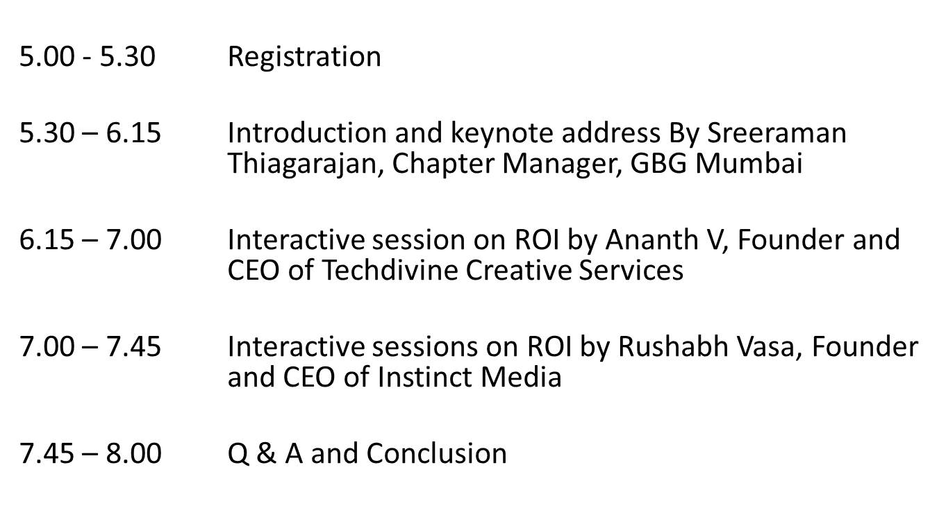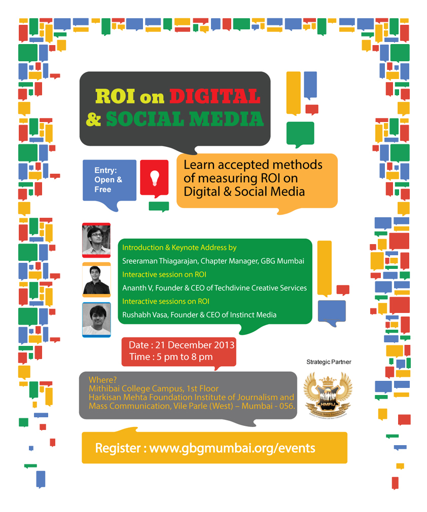 Make sure you are part of this interactive session. GBG Mumbai – ROI On Social Media MUMBAI Event – REGISTER NOW