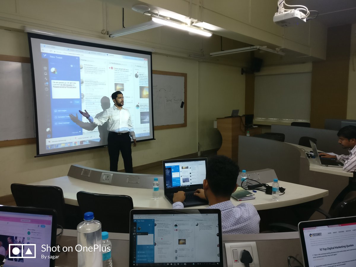 We covered topics right from the basics to hands-on case study focused SEO, SEM, Pay Per Click (PPC – Google Adwords, Facebook Ads, Instagram Ads, Twitter Ads), Analytics – (Google Analytics, Facebook insights, Instagram insights & Twitter insights), Live and real-time Blogging, Content Marketing, Digital Strategy, Introduction to IoT, AR, VR, etc