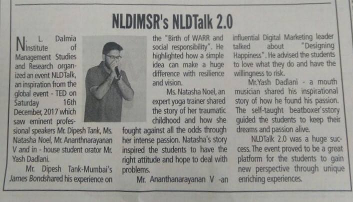 Business Standard Newspaper coverage as a Digital Marketing Speaker at NL Dalmia Institute of Management Studies and Research