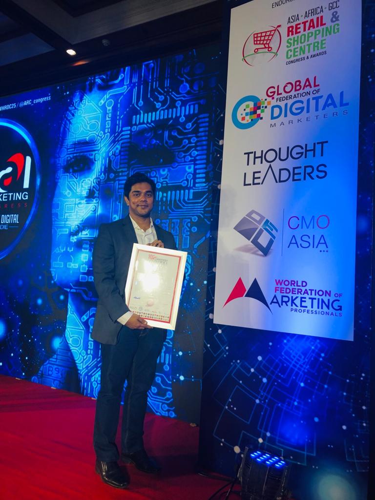 We are thrilled to share that our CEO, Mr.Ananthanarayanan V (Ananth V) has been awarded by CMO ASIA and World Marketing Congress at Taj Lands End, Mumbai on February 13th 2019 for his work in digital marketing.